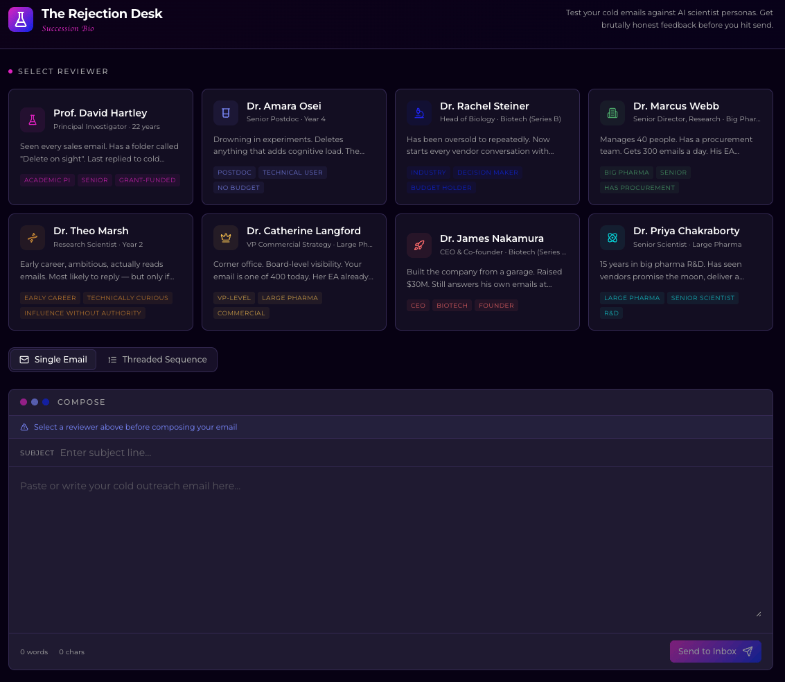 Nick created a fun app where you can input your prospecting email, choose a scientific persona, and then have them read it and roast it.