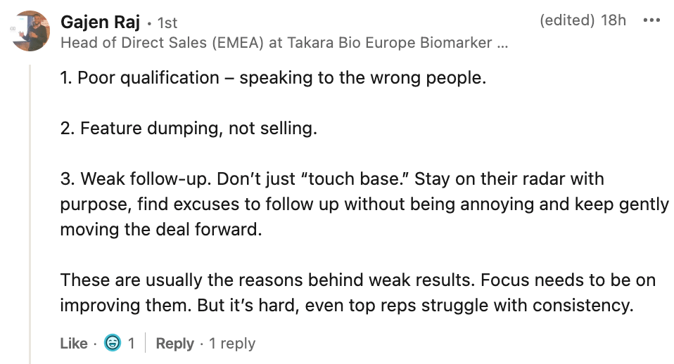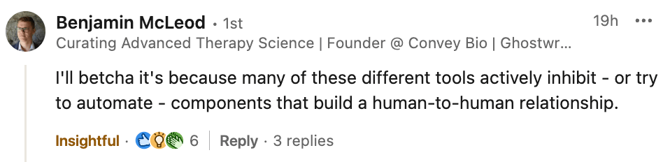 More on that here: https://blog.succession.bio/p/the-2-most-important-sales-activities